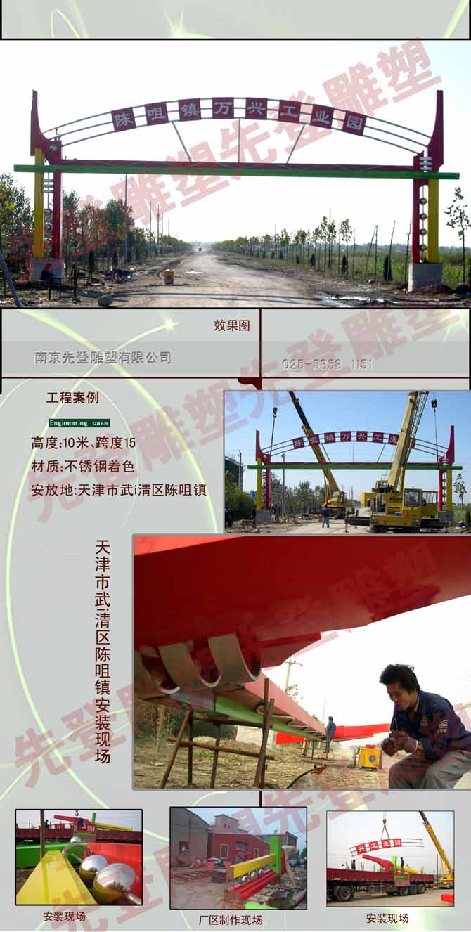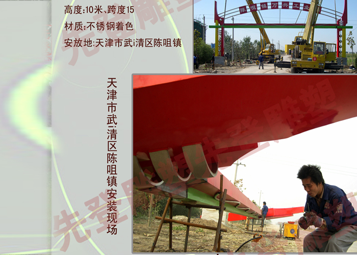 天津市武i清區陳咀鎮高度10跨度15大門不銹鋼雕塑